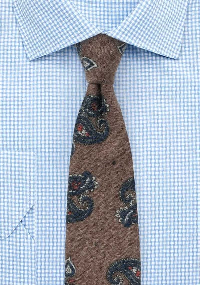 Cravată paisley din bumbac moca Cravată cu model paisley în maro capuccino