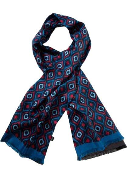 Esarfa dubla, matase, albastru, ornament170X30cm