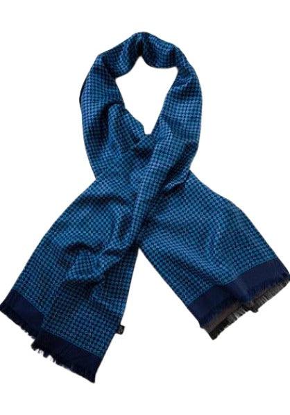 Esarfa dubla, matase, bleumarin, ornament